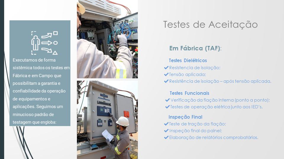 Atuamos com excelência na instalação de relés de proteção multifuncionais, controladores, gateways e produtos SCADA/IHM, trabalhando de forma sistêmica e seguindo todas as diretrizes e normas desde o projeto elétrico até a configuração e comissionamento dos sistemas.